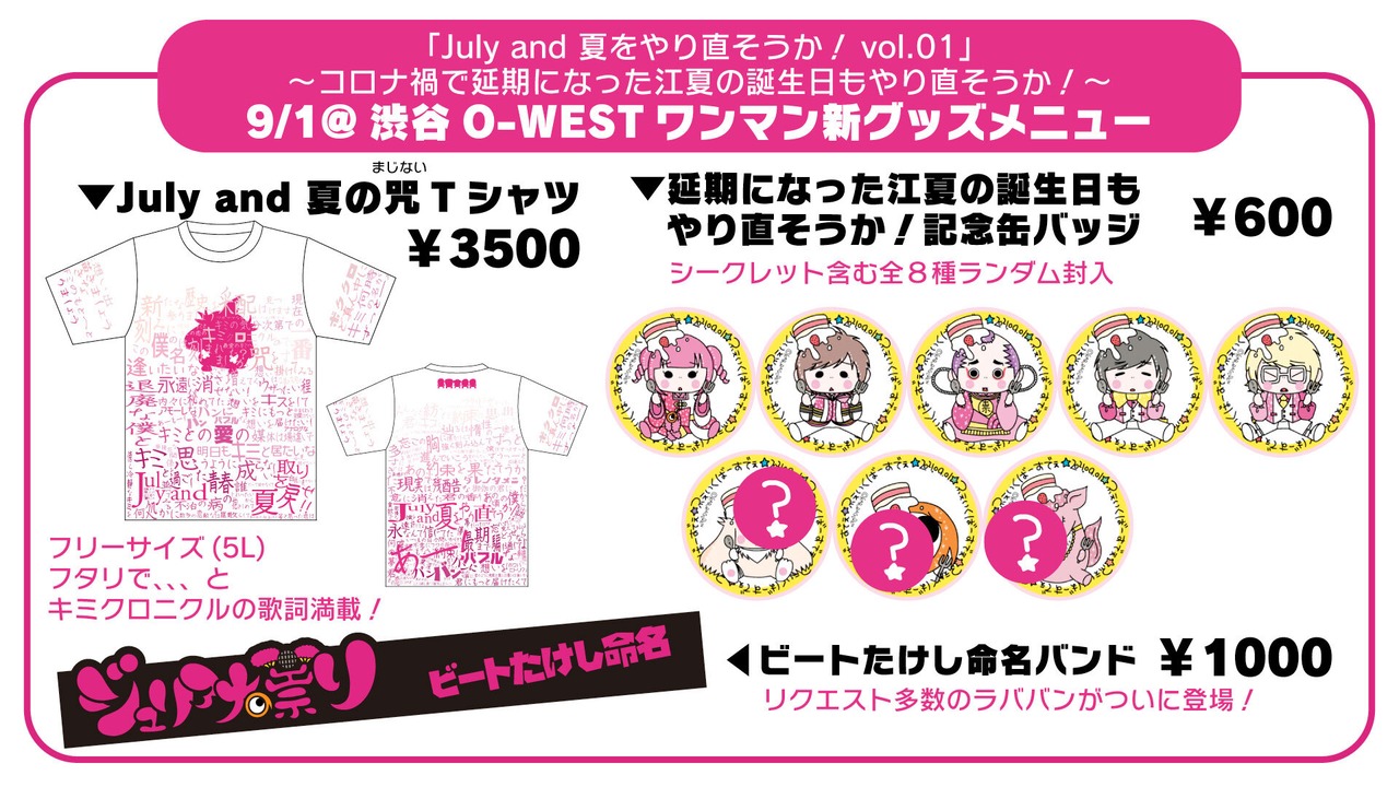 9/1(水)渋谷O-WESTワンマンにて販売されたグッズ
